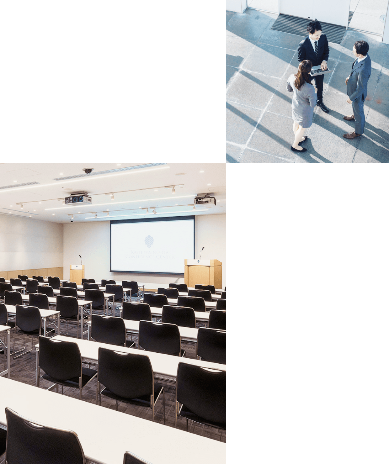 会場利用のお問い合わせから当日の運営までワンストップで対応し、レイアウトや見積書作成、各種手配から当日の運営管理まで幅広くサポートします。